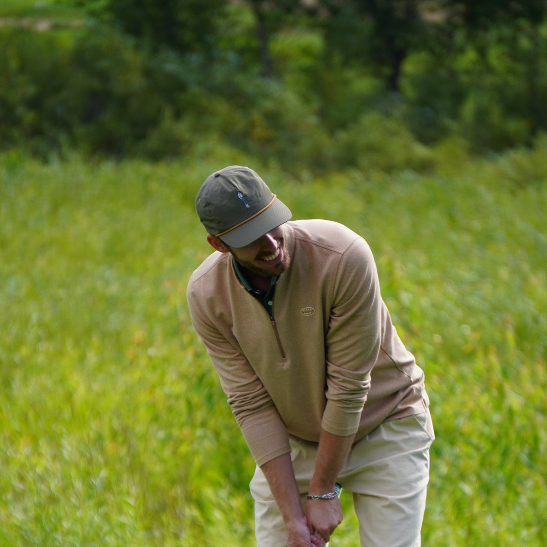 The color of this pullover pulls influence from the color tones of bunkers, and may just help you stay out of them...