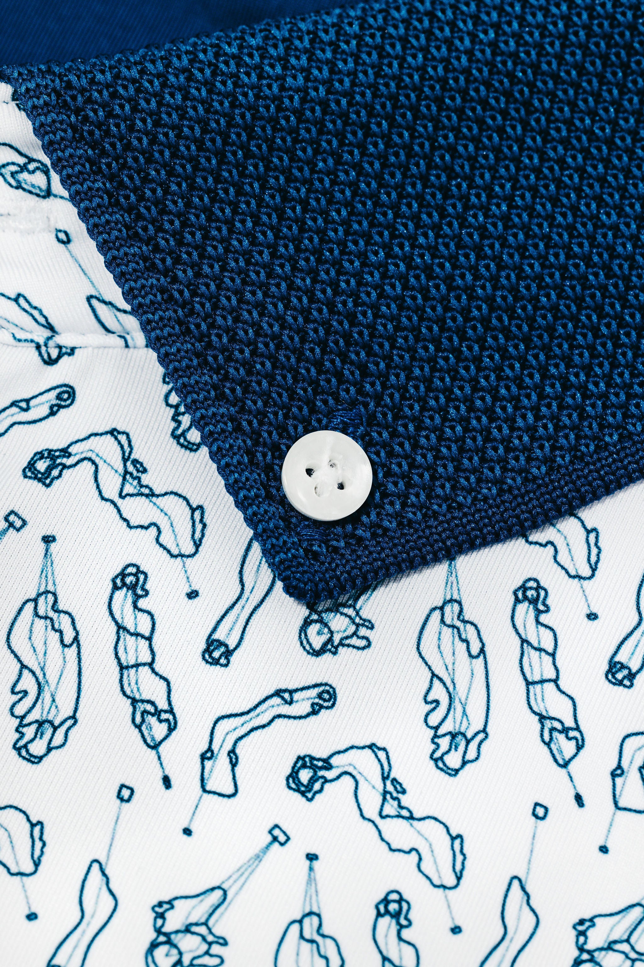 Tilly, the architect, is exquisitely represented by this pattern of signature designed holes, a blueprint brought to life in a refined way. This polo pays tribute to a few of his famous design elements. Here are just a few to mention: