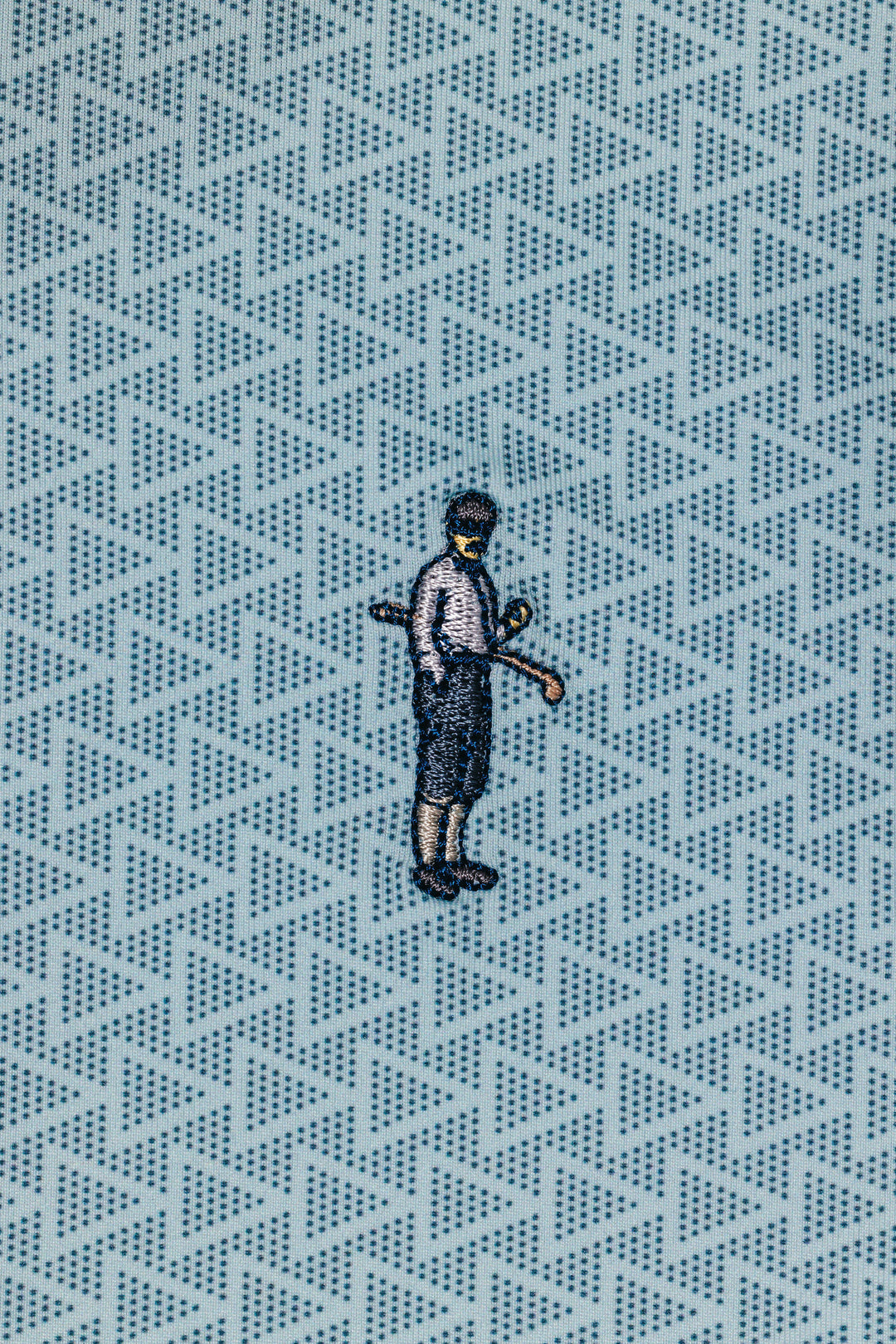 Mashie, an old golf term used to describe a mid-long iron. Historically, irons had dots instead of grooves on the face. The Mashie polo draws inspiration from the face of a mashie club and from the flags we attack in this great game. The Mashie Polo comes in a light blue or dark green color with the "mashie print" throughout.